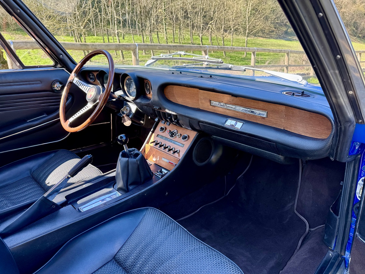 L’originalità intatta dell’auto ci ha spinto a intraprendere un restauro completo e senza badare a spese. Il veicolo è stato completamente smontato, la carrozzeria è stata sverniciata e riverniciata nel colore Blu Medio originale. Gli interni, rifiniti in nero cielo, sono stati rivestiti con i materiali originali.