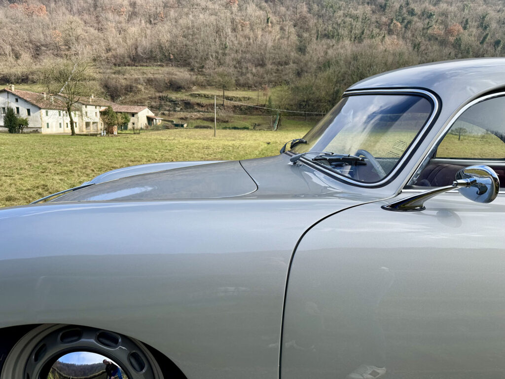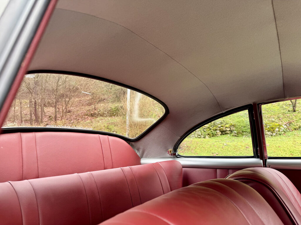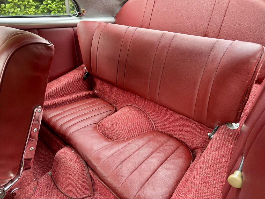 L’auto è stata successivamente utilizzata pochissimo e lo scorso autunno è stato effettuato un importante lavoro di carrozzeria per portarla alla corretta tonalità di grigio 5406B e sono stati forniti nuovi cerchi e pneumatici da 16″ per riportarla alle specifiche originali. Molta attenzione è rivolta alla parte meccanica, purtroppo il motore originale non è presente sull’auto ma ne è installato uno simile del 1956 marchiato KD che monta pistoni di cilindrata maggiore garantendo notevoli prestazioni alla vettura, anche il cambio è stato aggiornato a una versione più moderna per garantire affidabilità data la maggiore potenza erogata dal motore, il cambio originale è fornito con l’auto.