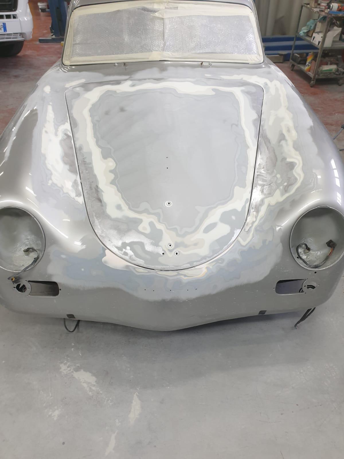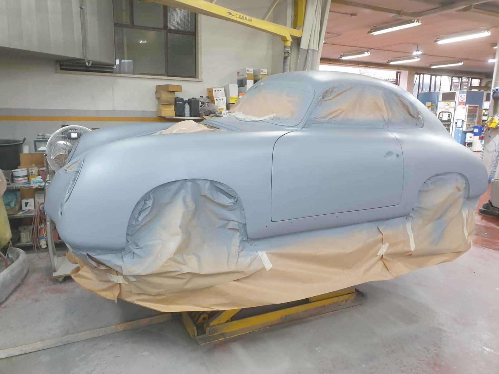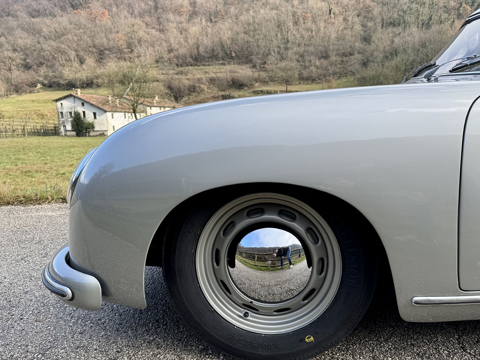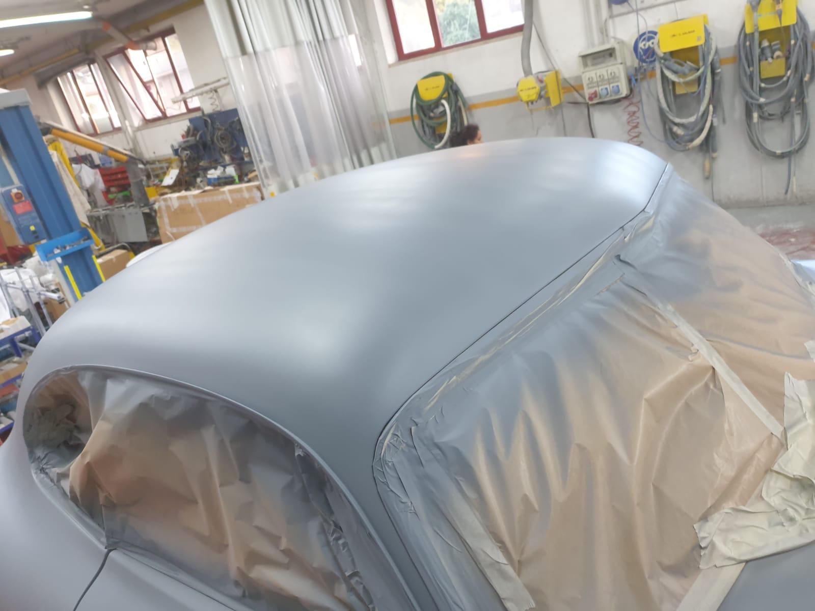 L’auto è stata successivamente utilizzata pochissimo e lo scorso autunno è stato effettuato un importante lavoro di carrozzeria per portarla alla corretta tonalità di grigio 5406B e sono stati forniti nuovi cerchi e pneumatici da 16″ per riportarla alle specifiche originali. Molta attenzione è rivolta alla parte meccanica, purtroppo il motore originale non è presente sull’auto ma ne è installato uno simile del 1956 marchiato KD che monta pistoni di cilindrata maggiore garantendo notevoli prestazioni alla vettura, anche il cambio è stato aggiornato a una versione più moderna per garantire affidabilità data la maggiore potenza erogata dal motore, il cambio originale è fornito con l’auto.