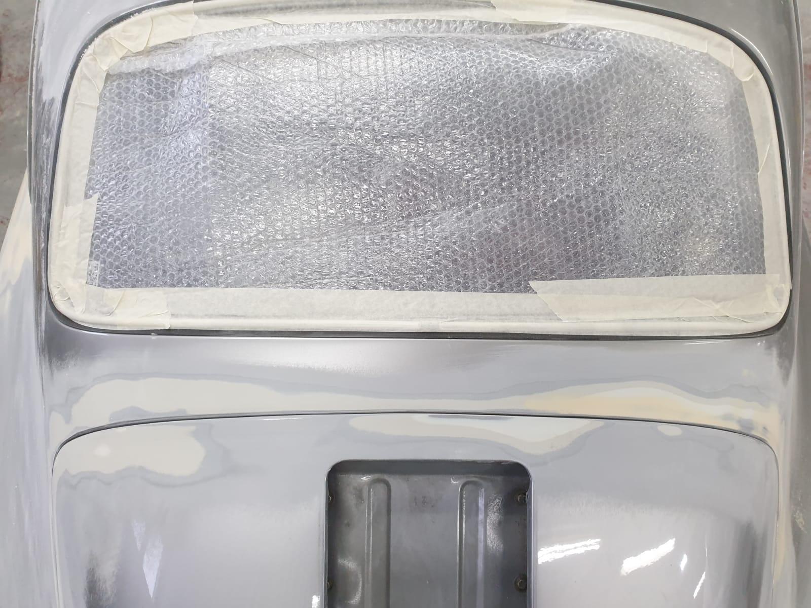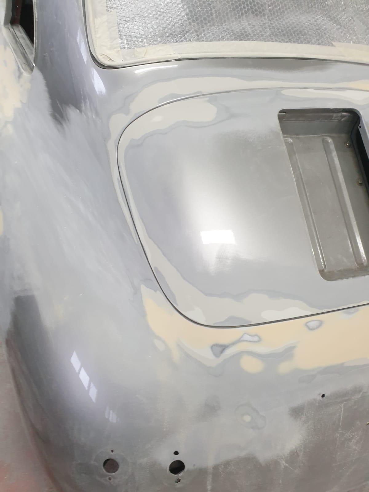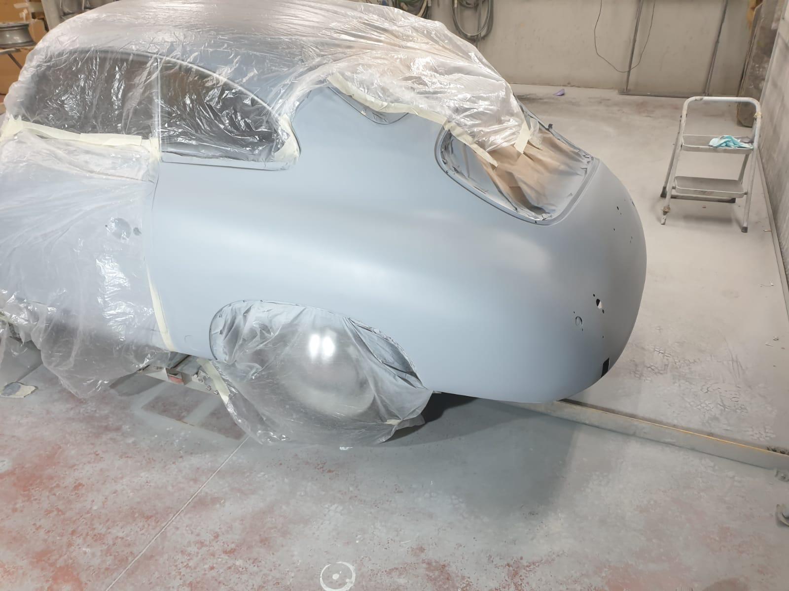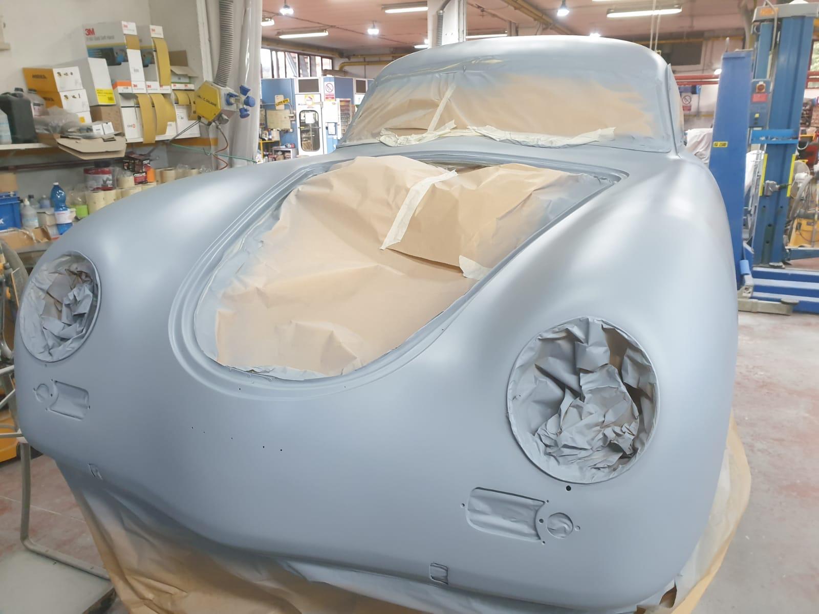 L’auto è stata successivamente utilizzata pochissimo e lo scorso autunno è stato effettuato un importante lavoro di carrozzeria per portarla alla corretta tonalità di grigio 5406B e sono stati forniti nuovi cerchi e pneumatici da 16″ per riportarla alle specifiche originali. Molta attenzione è rivolta alla parte meccanica, purtroppo il motore originale non è presente sull’auto ma ne è installato uno simile del 1956 marchiato KD che monta pistoni di cilindrata maggiore garantendo notevoli prestazioni alla vettura, anche il cambio è stato aggiornato a una versione più moderna per garantire affidabilità data la maggiore potenza erogata dal motore, il cambio originale è fornito con l’auto.