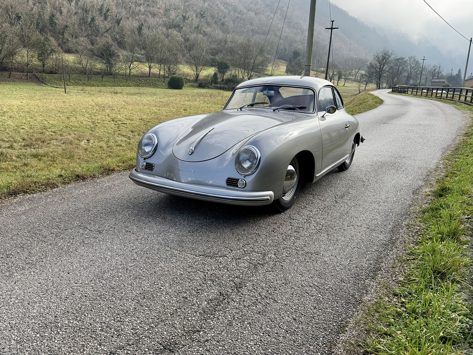 La leggendaria 356 di Ferdinand Porsche vide la luce per la prima volta in una piccola officina a Gmünd, in Austria, nel 1948. L’aumento della domanda portò allo spostamento della produzione a Stoccarda nel 1950, dove le vetture, ora con carrozzeria in acciaio, vennero assemblate dalla Karosserie Reutter. Inizialmente costruita con un parabrezza diviso, nel 1952 lo stile fu perfezionato con un più moderno “finestrino curvo” monoblocco. Questa vettura da noi offerta è l’ultima evoluzione della serie Pre A della Porsche 356 del 1955, prima di passare alla A T-1.