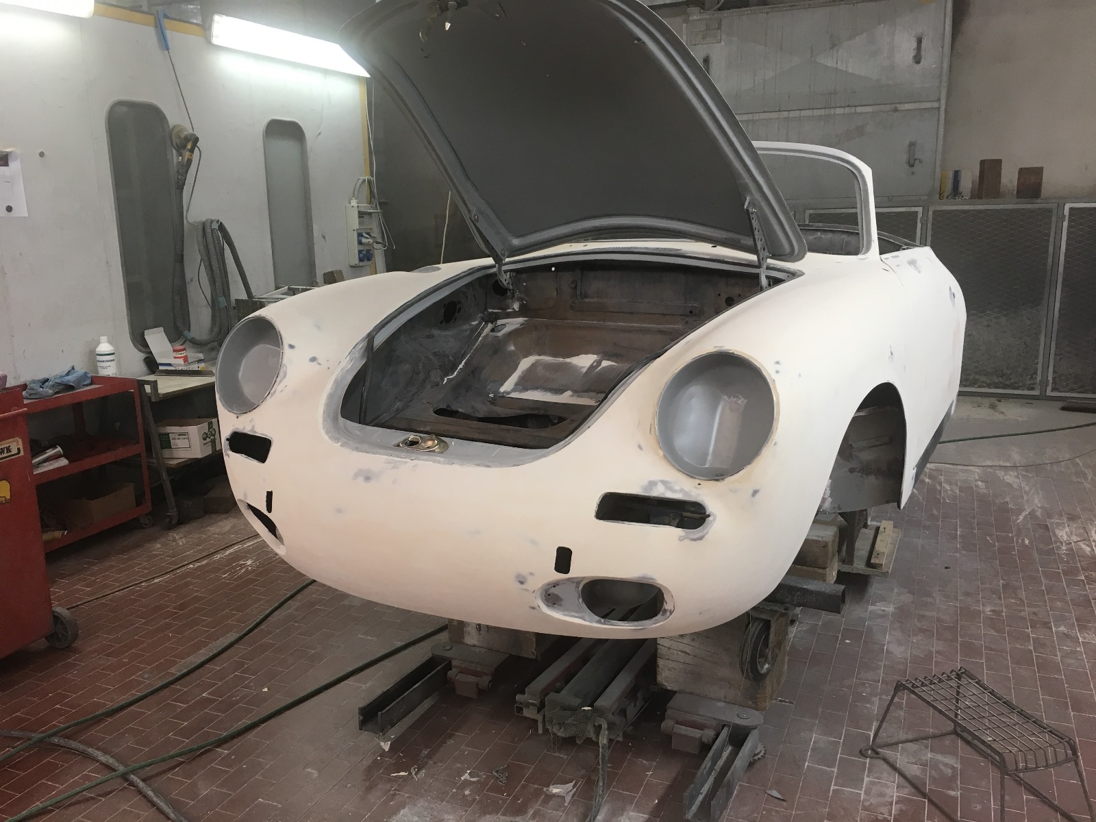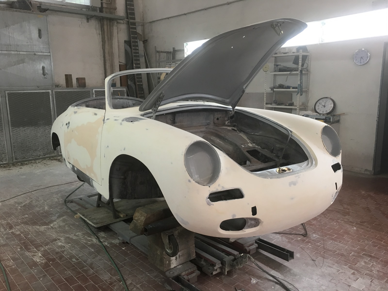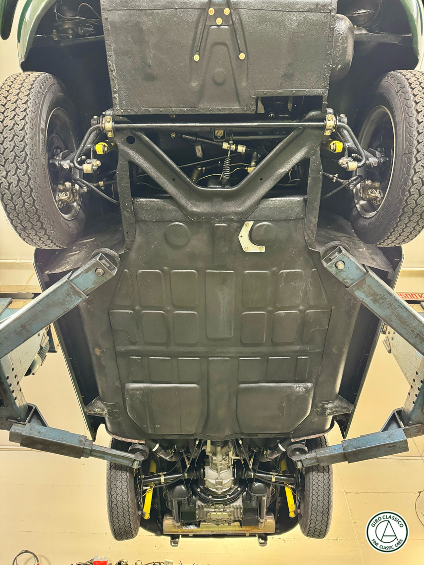 Acquistata da noi nel 2017 come progetto di restauro, è stata sottoposta a uno smontaggio totale, una sverniciatura e una completa lamieratura; tutte le parti della carrozzeria (cofani e portiere) corrispondono ai numeri di carrozzeria. Successivamente, è stata revisionata tutta la parte meccanica, come il cambio e la laminazione del telaio, installando uno scarico in acciaio inox, il tutto documentato fotograficamente. La carrozzeria è stata riverniciata nel suo originale verde irlandese e i rivestimenti sono stati rifatti in pelle beige, il che le conferisce un abbinamento ideale e conforme allo stile d’epoca, rendendo questa 356 SC per il mercato UE un’auto completamente rinnovata, il tutto documentato da un libro fotografico contenente oltre 400 fotografie.