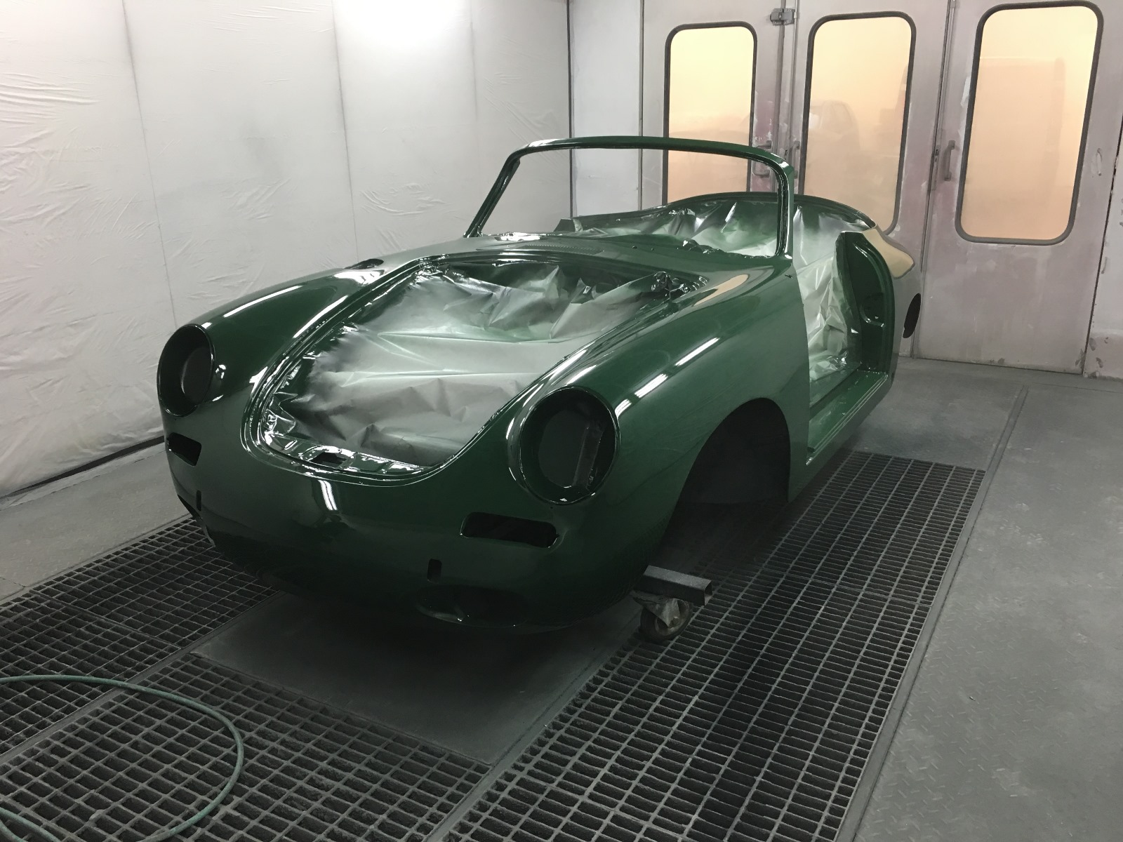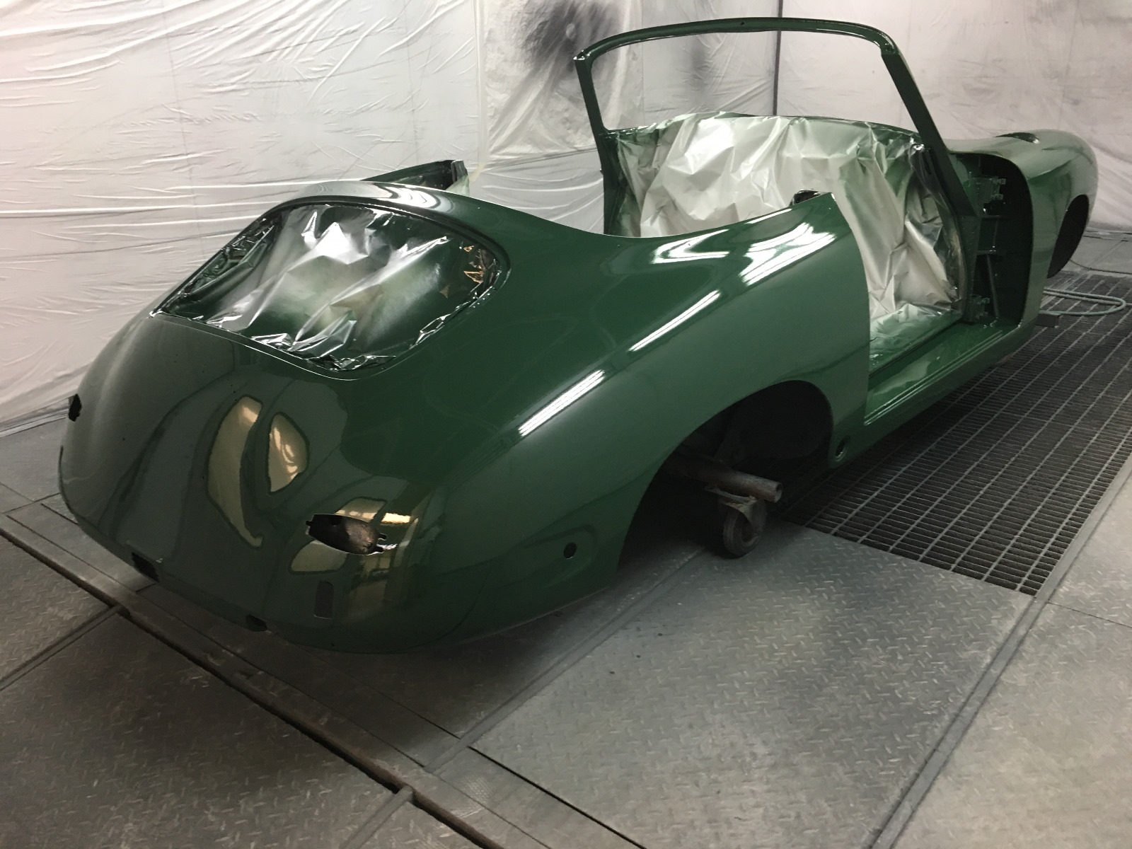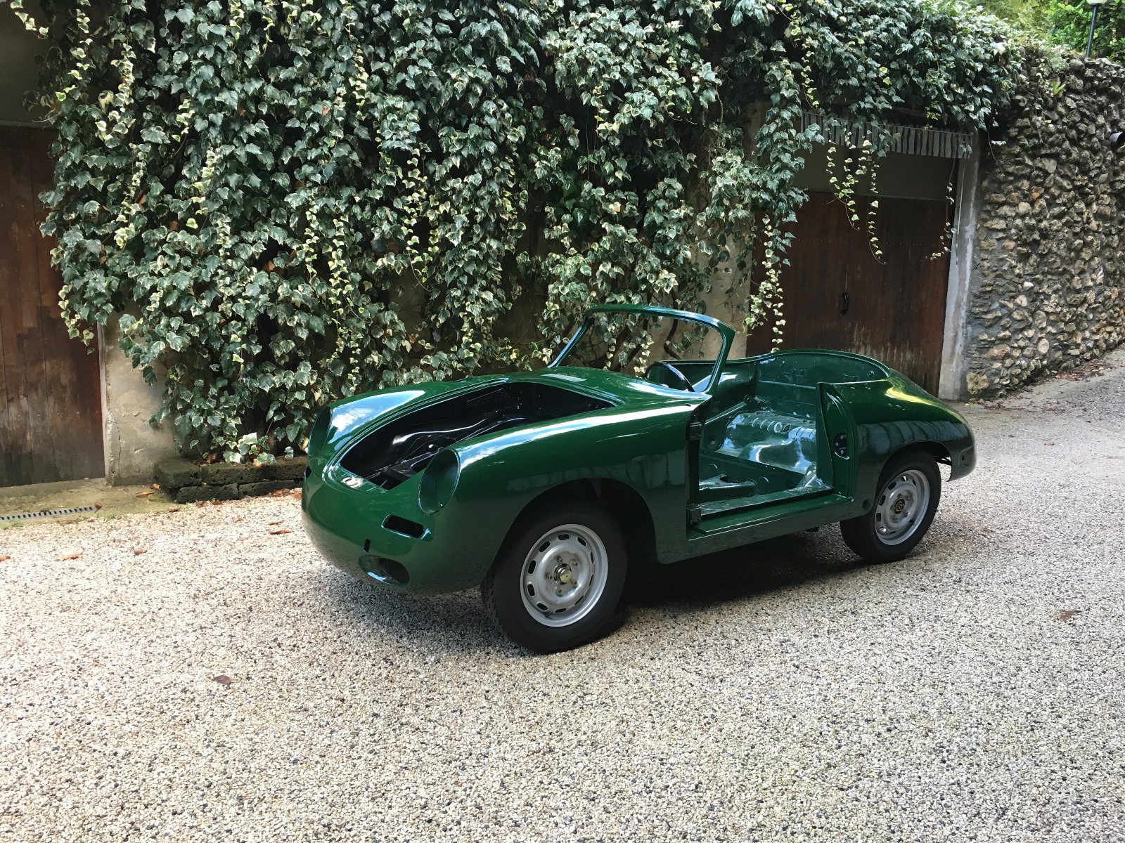 Acquistata da noi nel 2017 come progetto di restauro, è stata sottoposta a uno smontaggio totale, una sverniciatura e una completa lamieratura; tutte le parti della carrozzeria (cofani e portiere) corrispondono ai numeri di carrozzeria. Successivamente, è stata revisionata tutta la parte meccanica, come il cambio e la laminazione del telaio, installando uno scarico in acciaio inox, il tutto documentato fotograficamente. La carrozzeria è stata riverniciata nel suo originale verde irlandese e i rivestimenti sono stati rifatti in pelle beige, il che le conferisce un abbinamento ideale e conforme allo stile d’epoca, rendendo questa 356 SC per il mercato UE un’auto completamente rinnovata, il tutto documentato da un libro fotografico contenente oltre 400 fotografie.