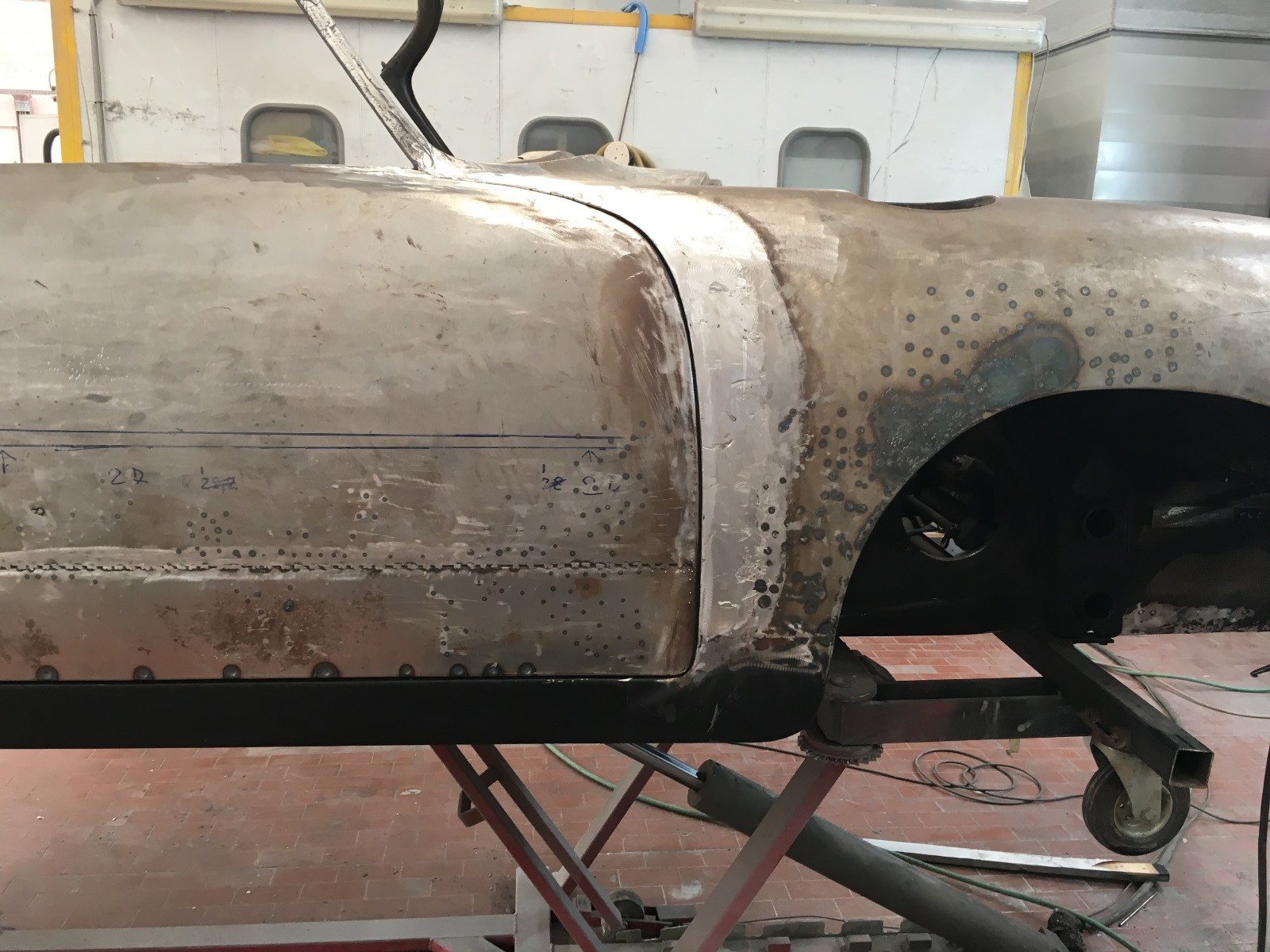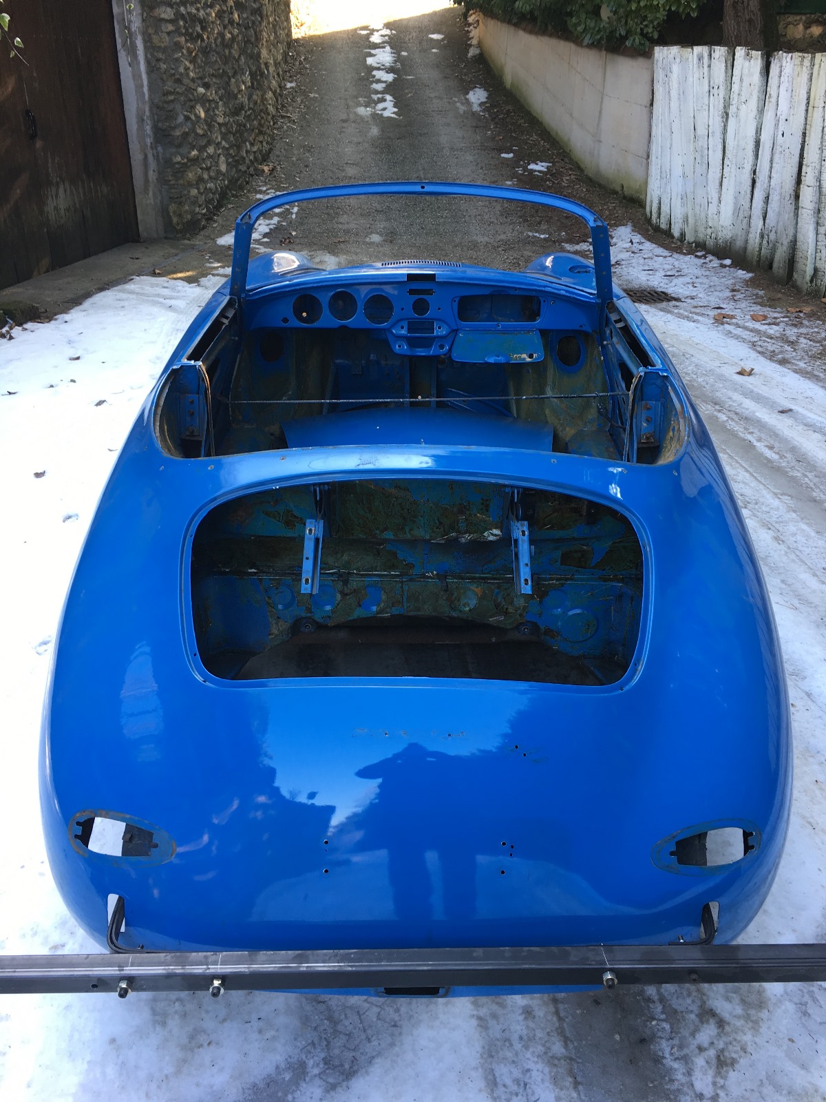 Dopo un periodo iniziale di incertezza, l’auto è stata acquistata negli anni ’90 alle Isole Canarie e sottoposta a un primo restauro (l’intero processo è documentato). Si pensa che in quel periodo il motore sia stato sostituito perché troppo deteriorato e ne sia stato montato uno dello stesso tipo e serie (numeri KD) del 1965, non lontano dalla numerazione originale, riverniciato e optato per un colore blu pastello e successivamente utilizzato quotidianamente, soprattutto in estate.
