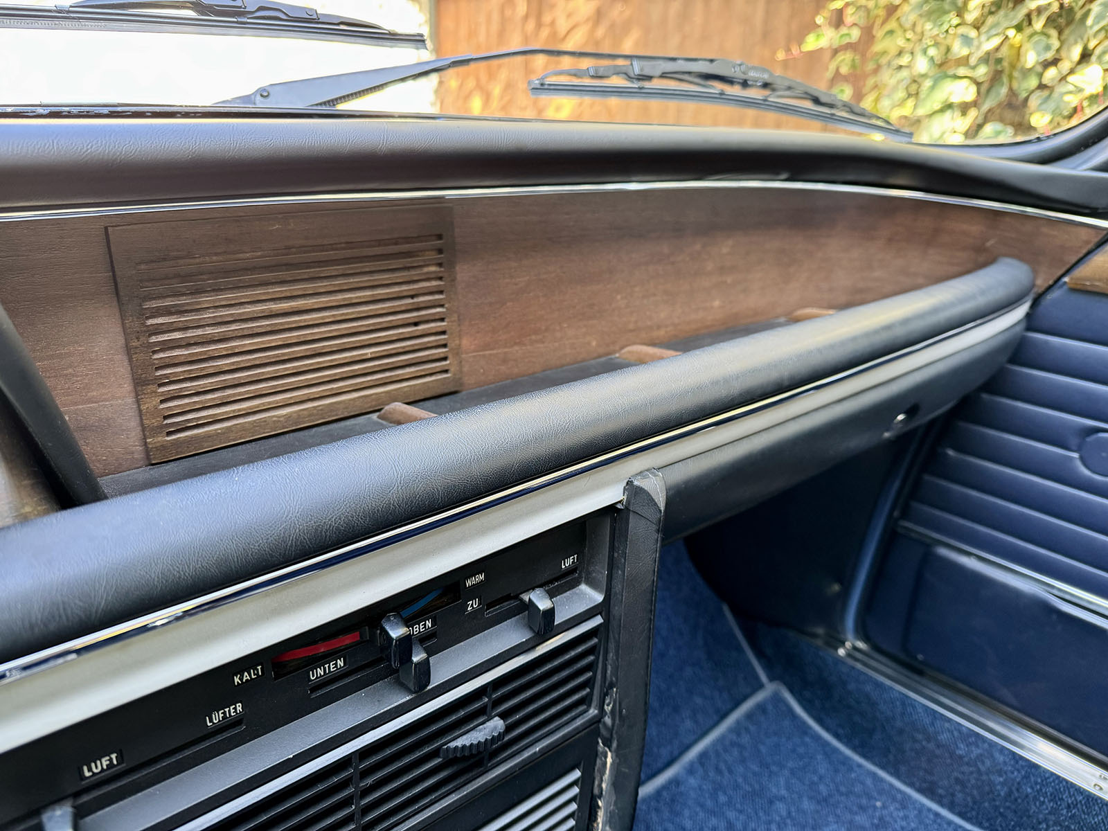 All steel components were polished, iron parts re-chromed, and the interior almost entirely original has been preserved in excellent condition, featuring the distinctive details typical of late-production models. The wood trim has been fully restored, and the electrical system has been completely overhauled.