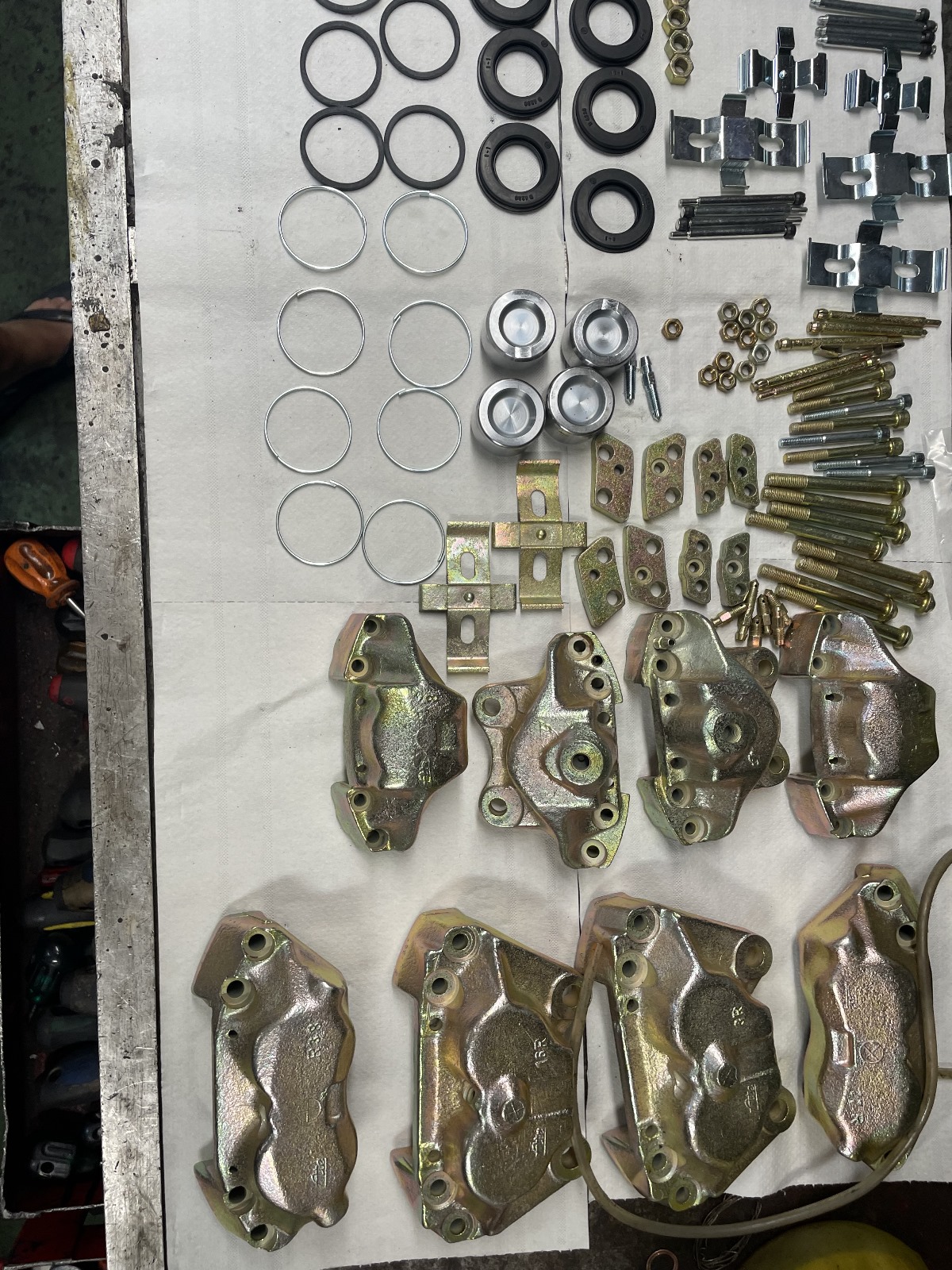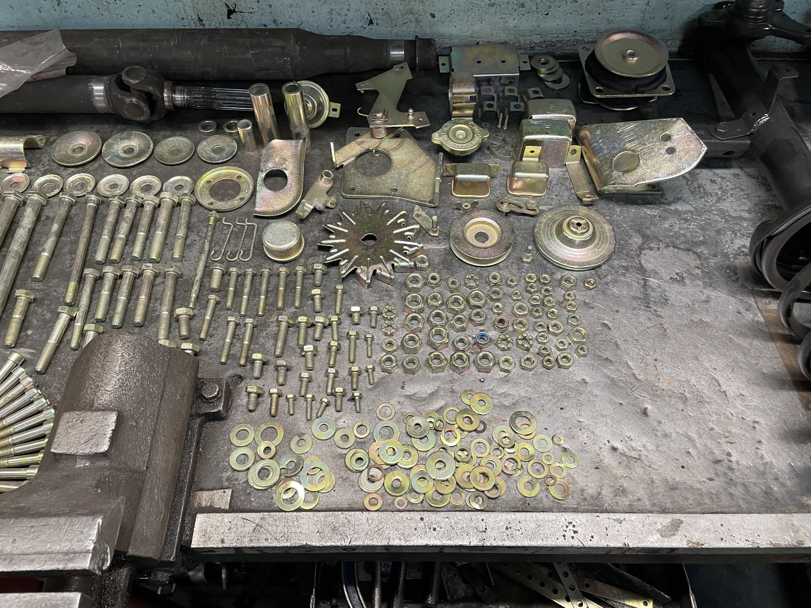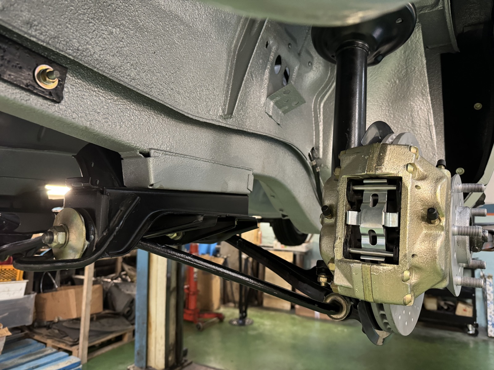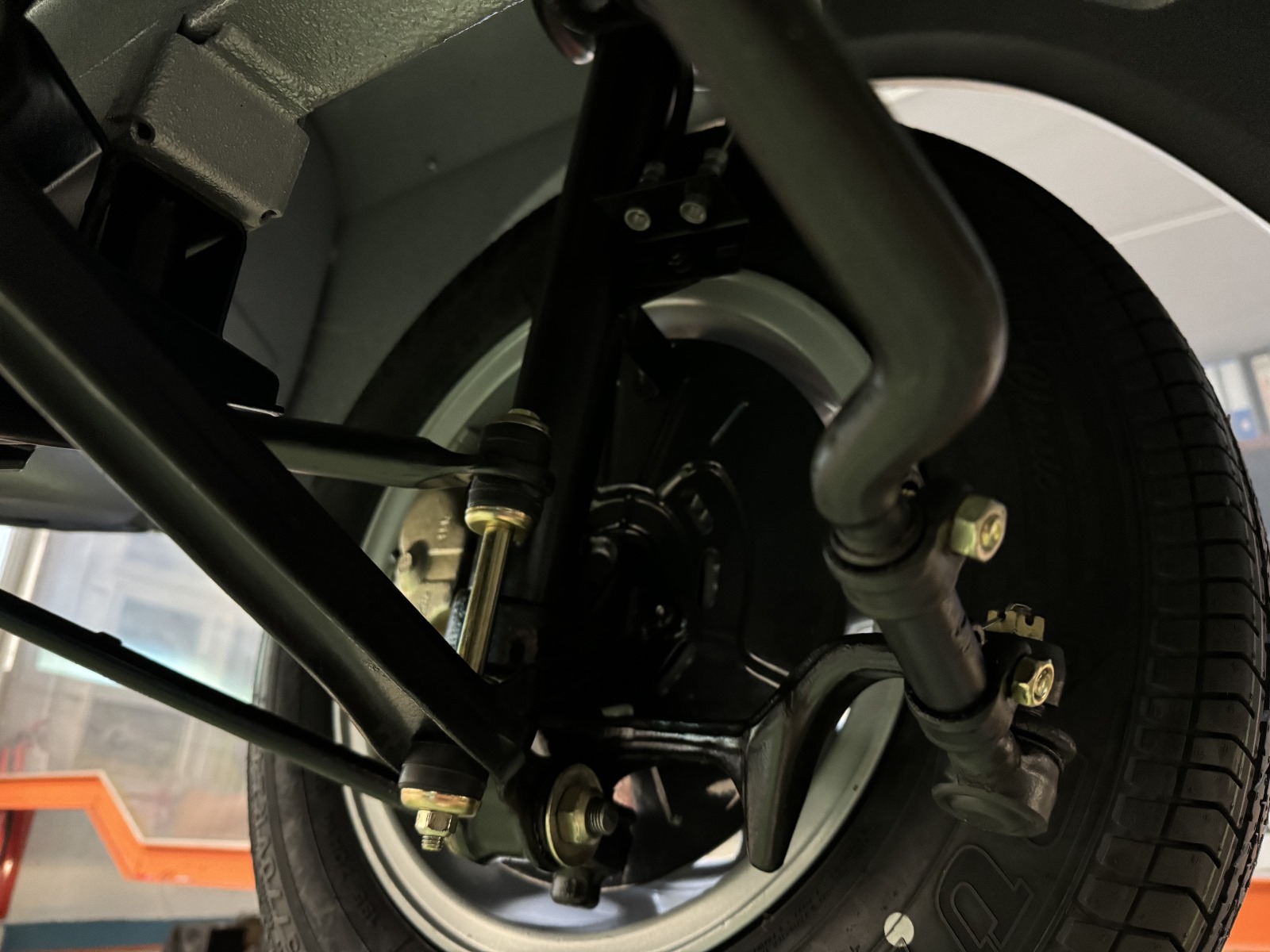 Both the front and rear axles have been fully overhauled, including the replacement of shock absorber bushings and differential bearings. This model features a limited-slip differential for enhanced handling. The entire braking system has also been refurbished: brake pads disassembled, new cylinders, seals, and lines installed. Additionally, the brake master cylinder, clutch pump, and brake booster an upgraded version specific to the '75 model have all been reconditioned to factory specifications.