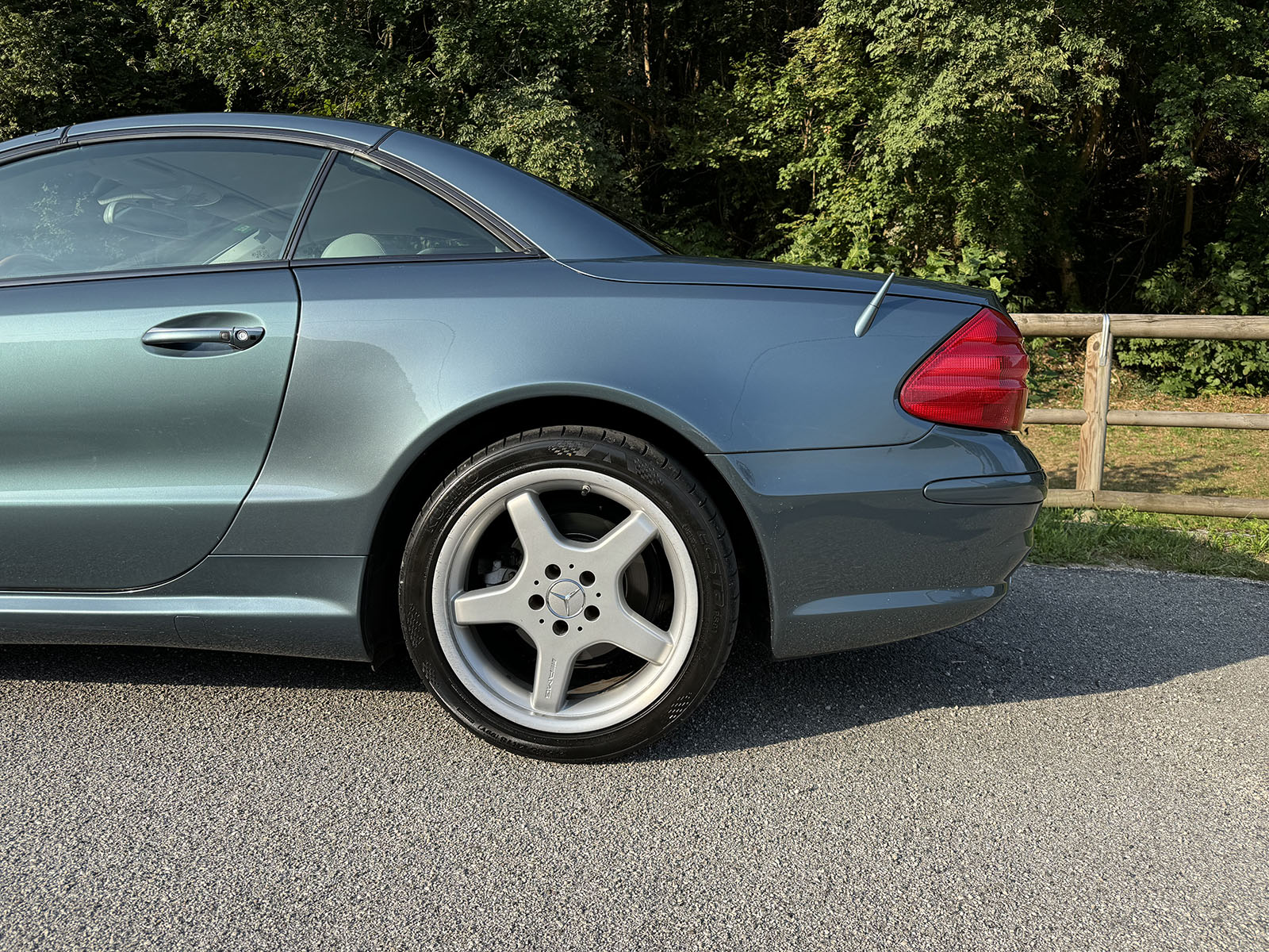 The car we are offering was delivered new on 2002-02-18 to its first Swiss owner who decided to collect it from the Mercedes-Benz Villeneuve-Lounet branch in Nice, where it certainly spent some splendid summers, Among the countless optional extras, the following certainly stand out the 722 AMG body kit for overprice from new 3630€ and 790 AMG 18-inch wheels for add 2370€, the 219 Distrinic system (radar) for add 2000€, always to be added to the final invoice a special colours 946 Topaz Blue and Exclusive Nappa leather, only the interior add others 3000€ all served with an optional Bose system, plus many others not of lesser importance or value but more common on other SLs.