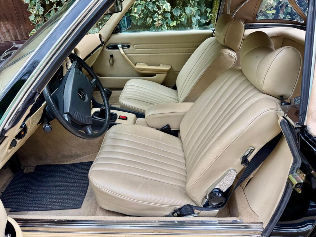 Today the car is in very good condition in attractive color combination Schwartz 040 over Pergament 205 leather with the A/C of the period ready to drive in perfect efficiency, accompany the car a file history from new.